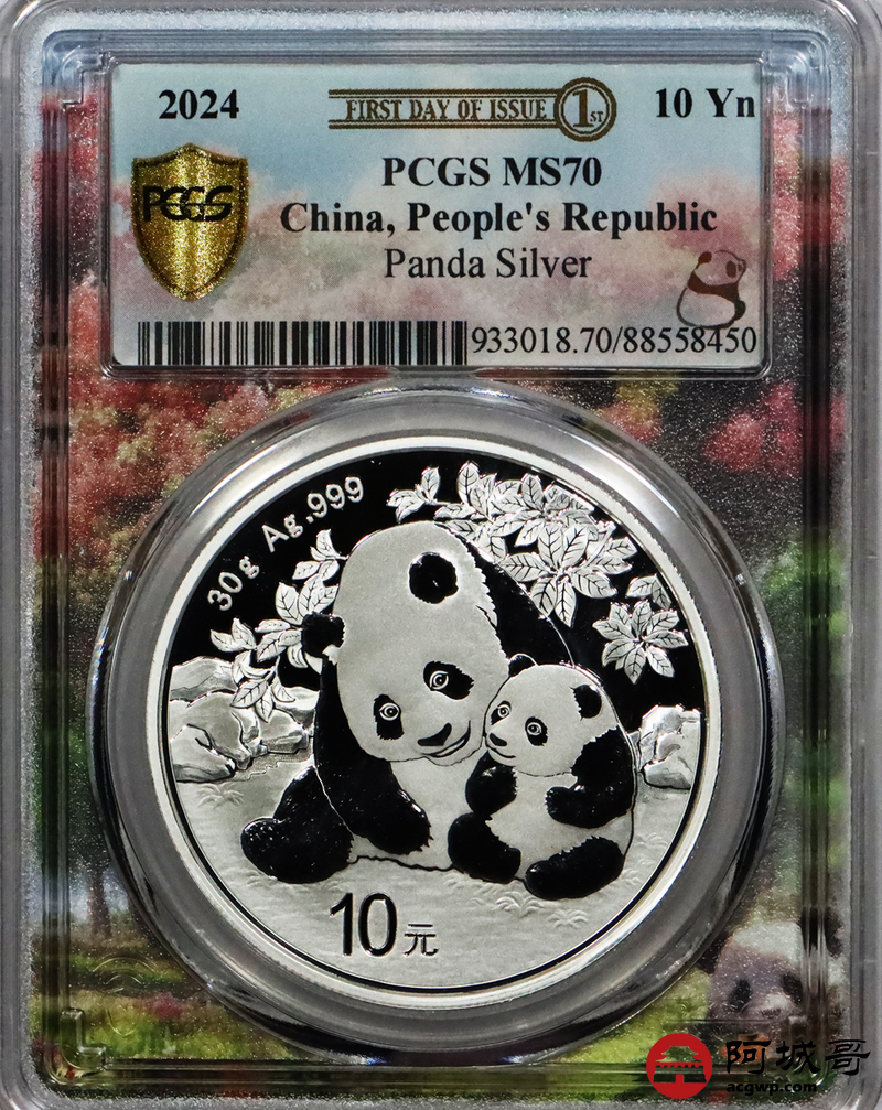 Lot:44 2024年熊猫币10元银币 初打标签 “亲情盛开” PCGS MS70