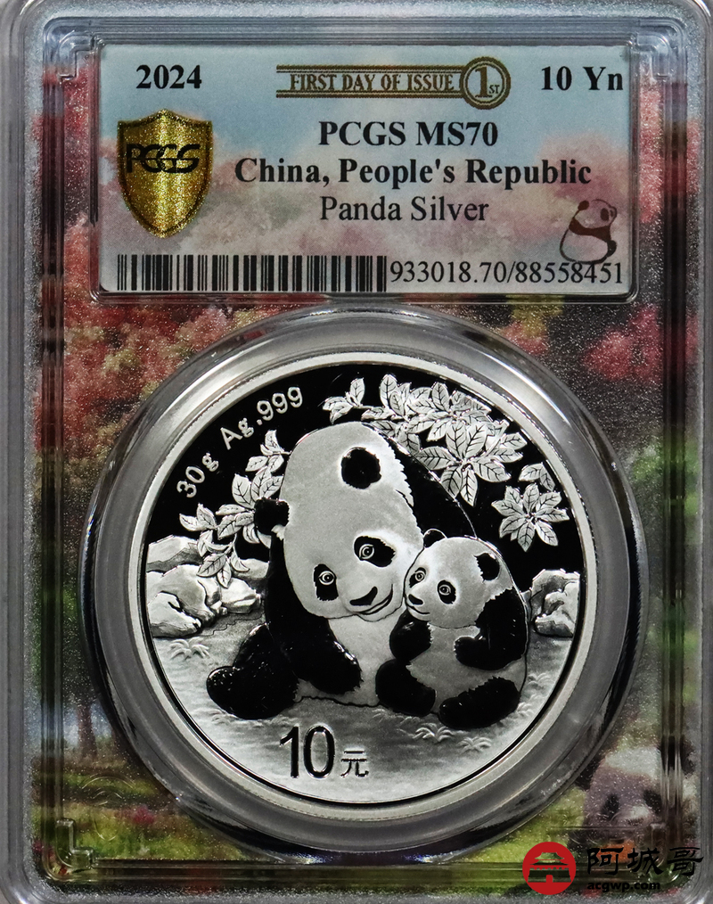 Lot:74 2024年熊猫币10元银币 初打标签 “亲情盛开” PCGS MS70
