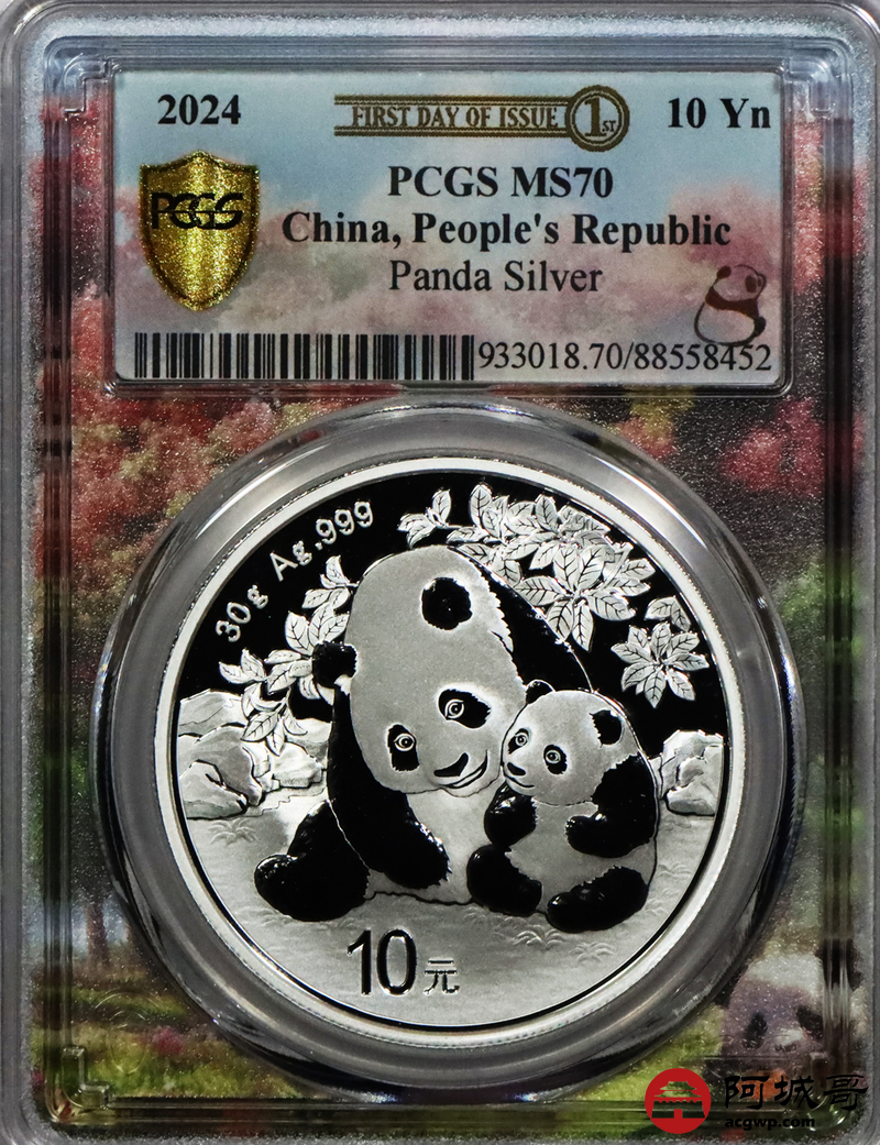 Lot:105 2024年熊猫币10元银币 初打标签 “亲情盛开” PCGS MS70