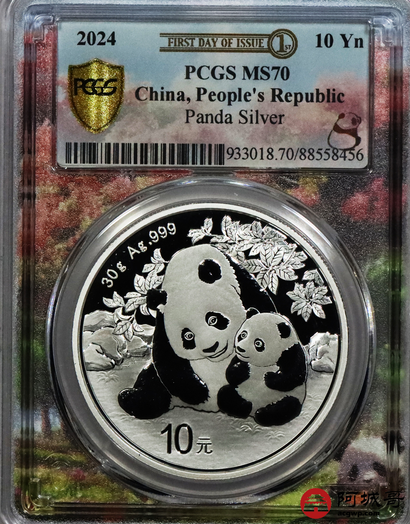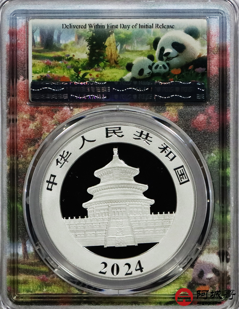 Lot:100 2024年熊猫币10元银币 初打标签 “亲情盛开” PCGS MS70