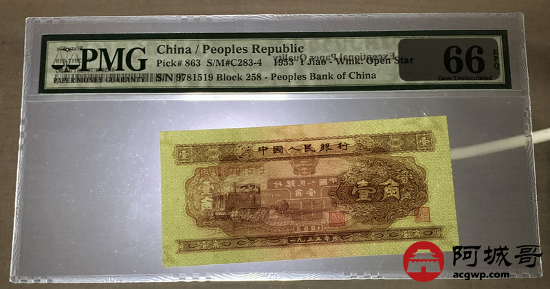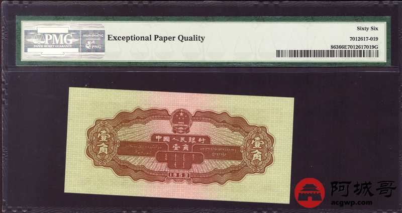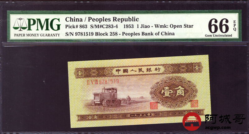 Lot:12 二版 1953年 壹角 PMG 66EPQ 好号无4