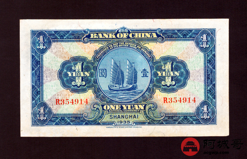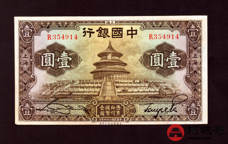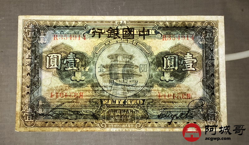 Lot:7 民国24年 中国银行 壹圆 上海地名 9成新 好品少见