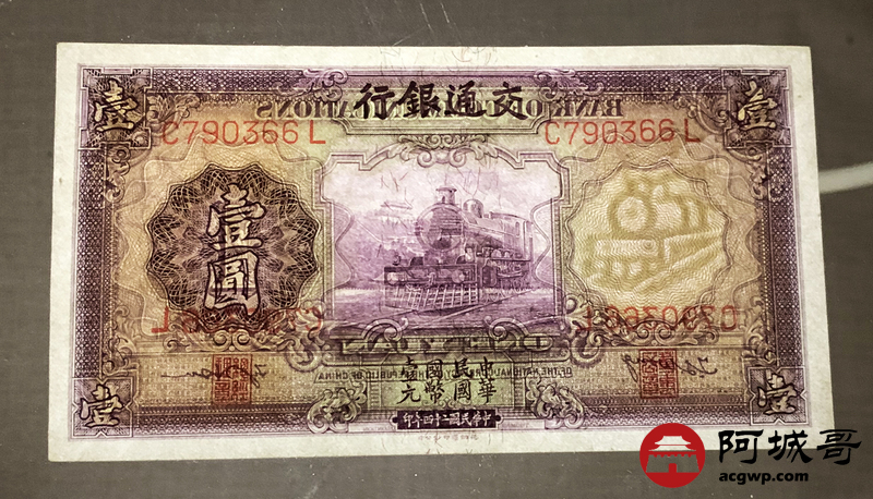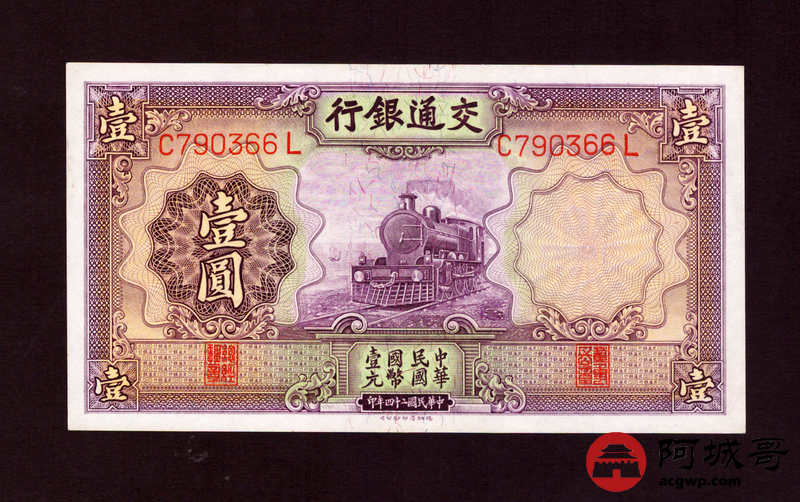 Lot:17 民国24年 交通银行 壹圆 93成新