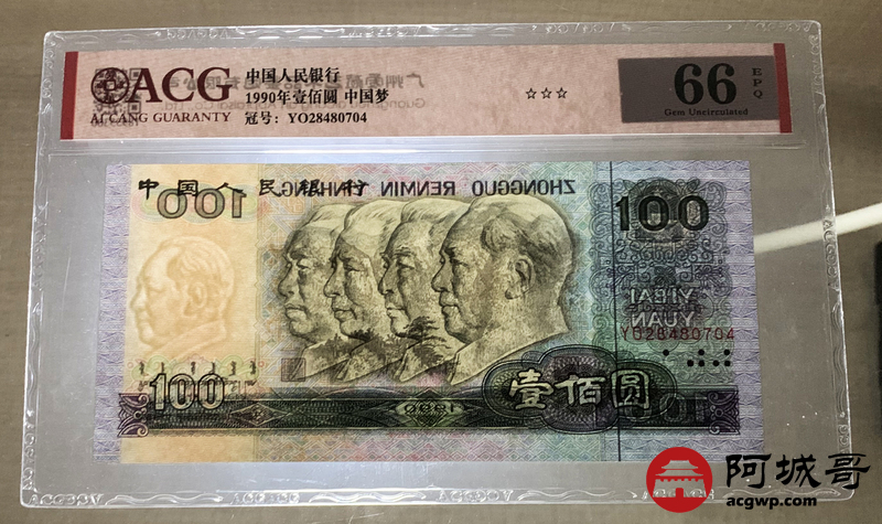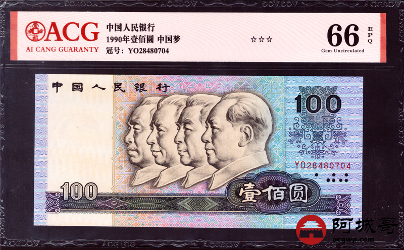 Lot:30 四版 1990年 壹佰圆 中国梦 爱藏 66EPQ