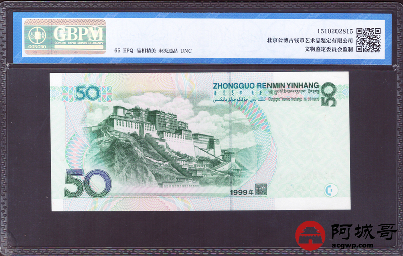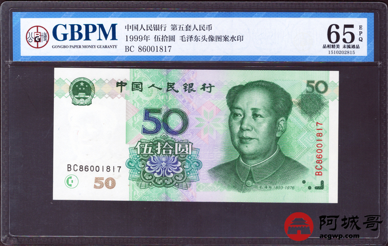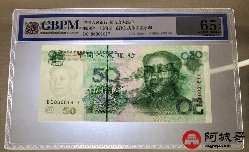 Lot:23 九九年 伍拾圆 好号无4 GBPM 65EPQ