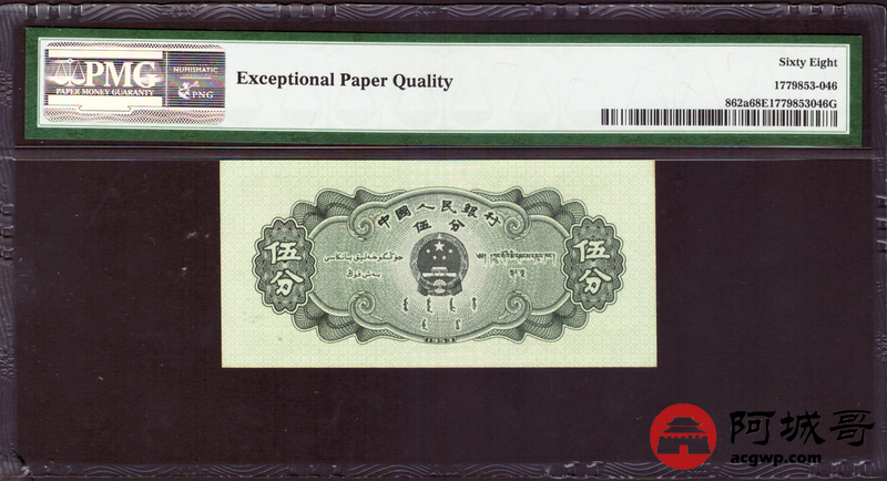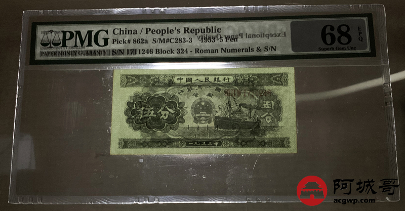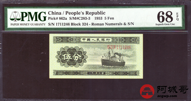 Lot:12 二版 1953年 轮船伍分 PMG 68EPQ
