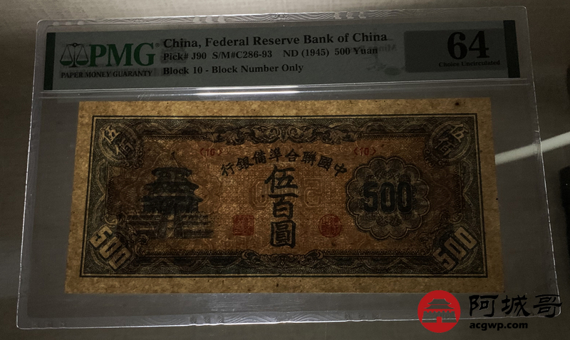 Lot:5 中国联合准备银行 伍佰圆 PMG 64