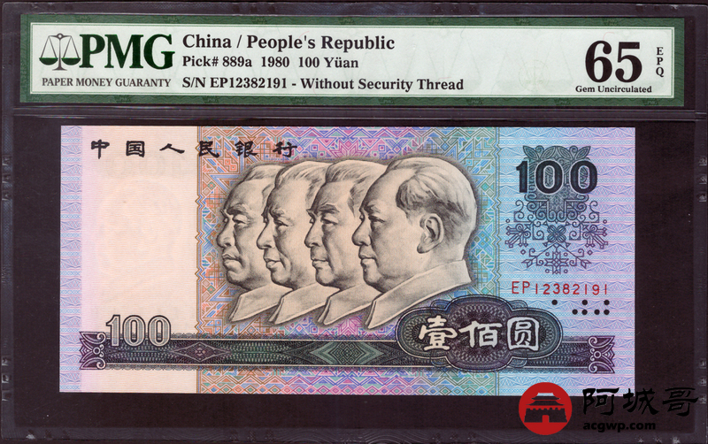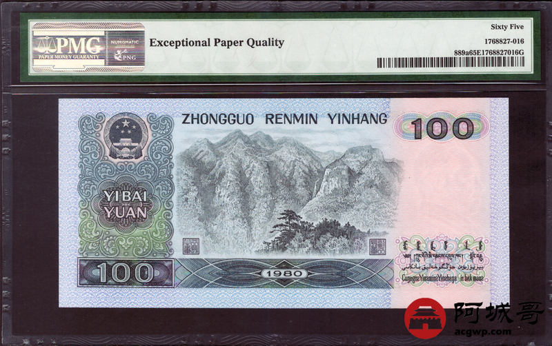 Lot:1 四版 1980年 100元 无47 PMG 65EPQ
