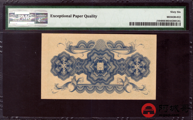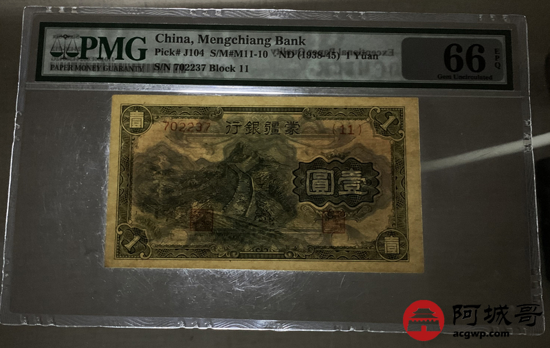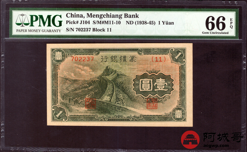 Lot:10 蒙疆银行壹圆 无4 亚军分 更高分仅5枚