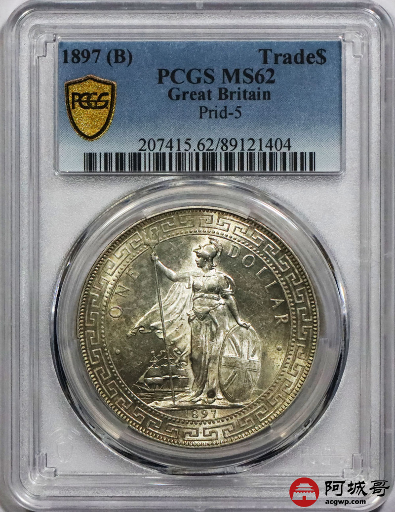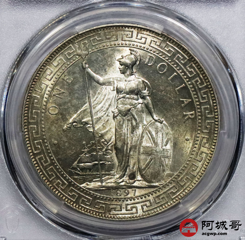 Lot:null 黄油彩 1897凸B 英国站洋壹元 PCGS MS 62