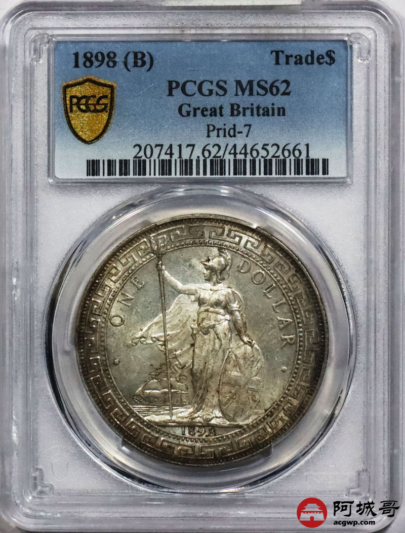 Lot:null 淡彩光 1989凸B 英国站洋壹元 PCGS MS 62