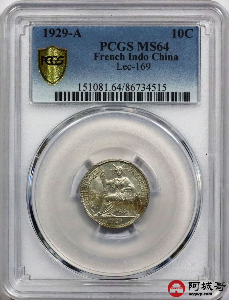 Lot:null 原光 1929年法国坐洋一角 PCGS MS 64