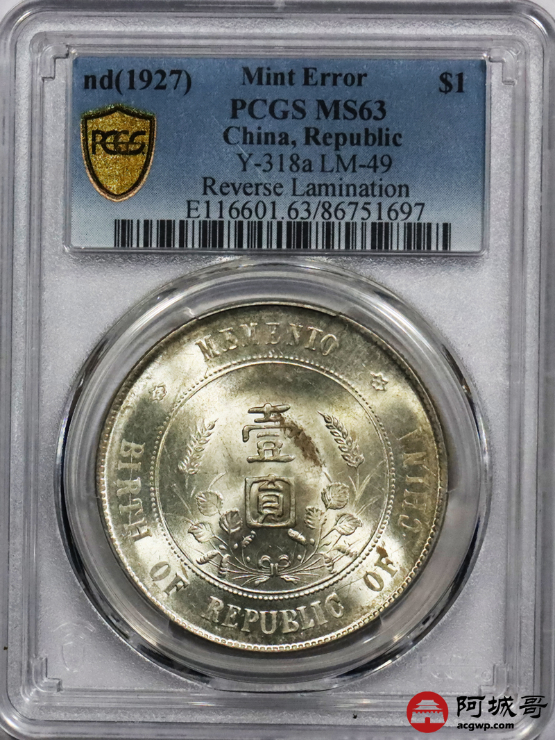 Lot:null 原光 开国纪念币小头 错版 PCGS MS63