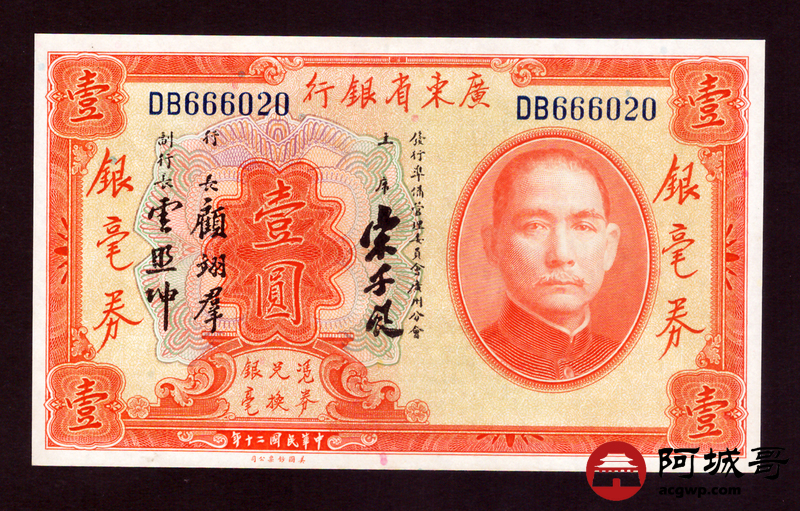 Lot:null 广东省银行 银豪券 壹圆
