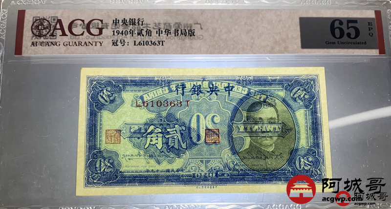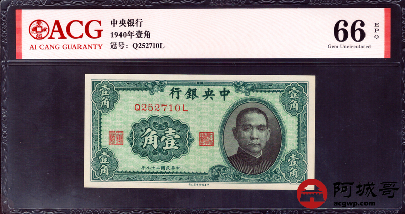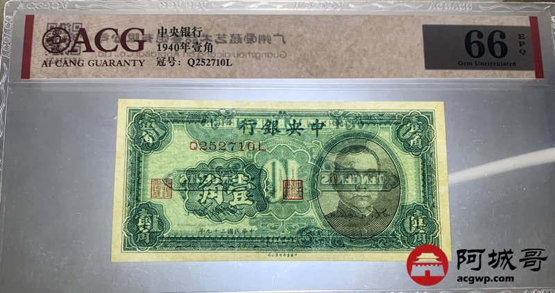 Lot:null 中央银行 壹角 ACG 66EPQ中央银行 贰角 ACG 65EPQ