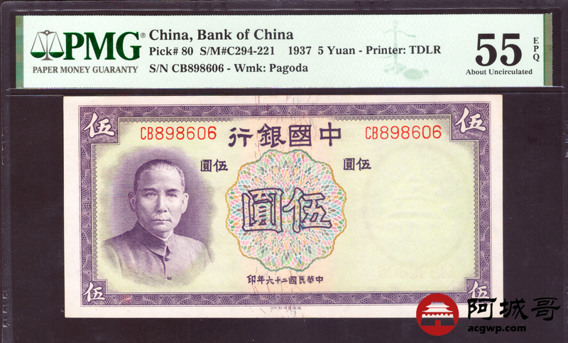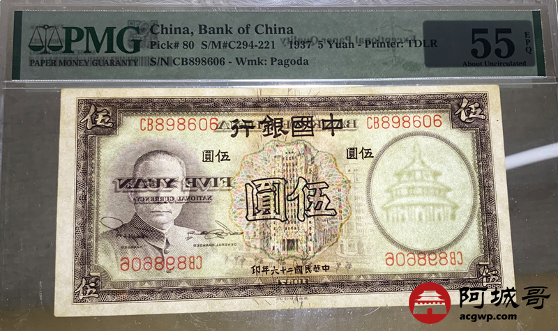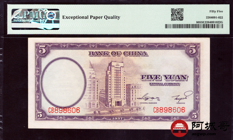 Lot:null 中国银行 伍圆 PMG 55EPQ