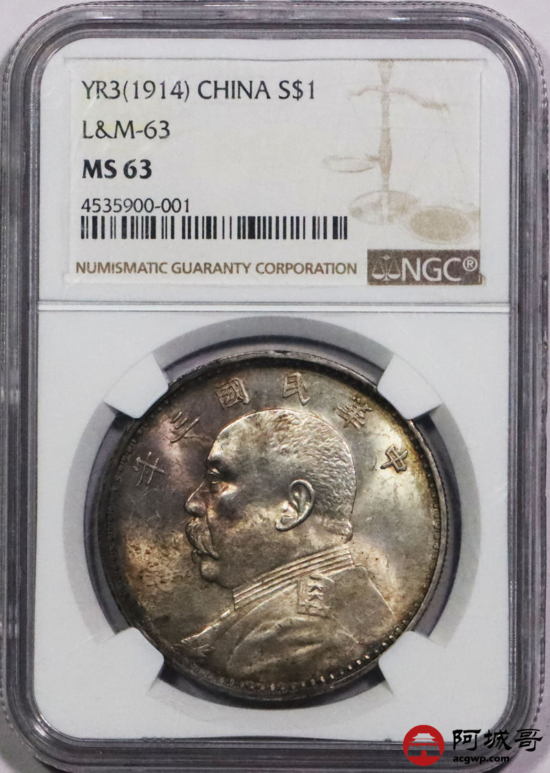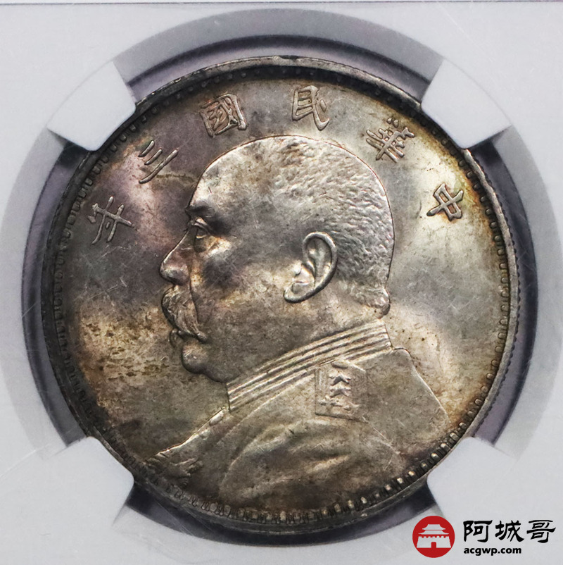 Lot:null 民国三年大头 壹元 五彩包浆 NGC MS63燕子版
