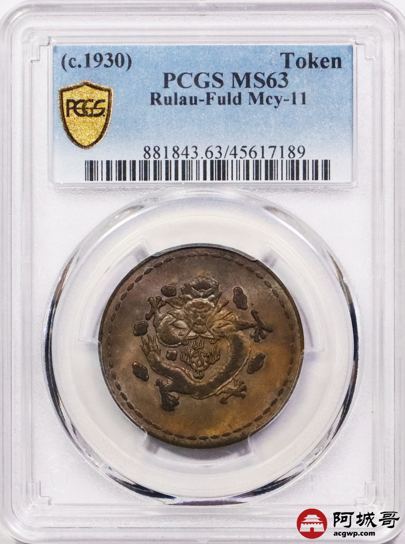 Lot:3548 1930长命富贵黄铜代用币一枚,保存状态完好,光度充沛 PCGS MS63