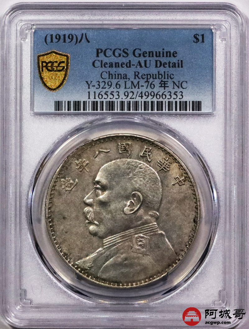 Lot:12 深打 底光 八年大头壹圆 PCGS AU