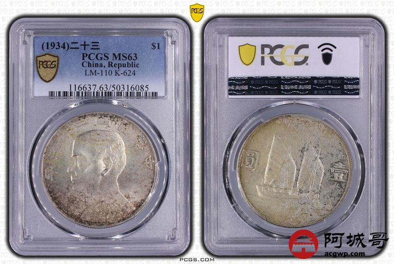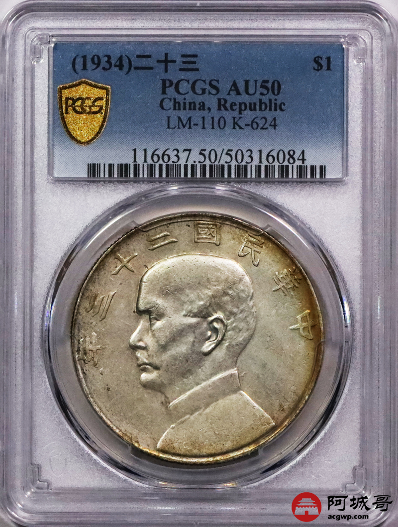 Lot:39 黄油彩底光二十三年船洋 PCGS AU50