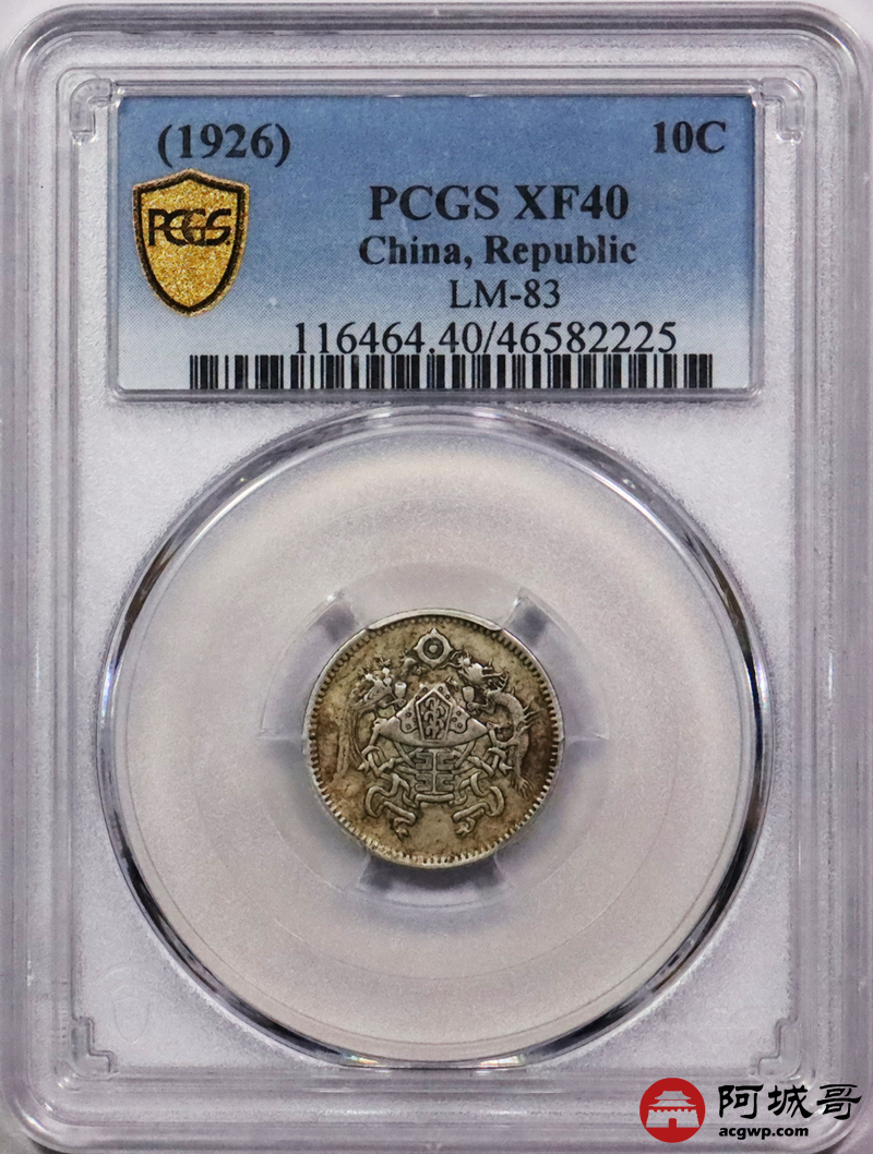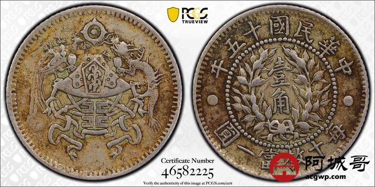 Lot:15 老包浆 民国十五年龙凤壹角 PCGS XF40
