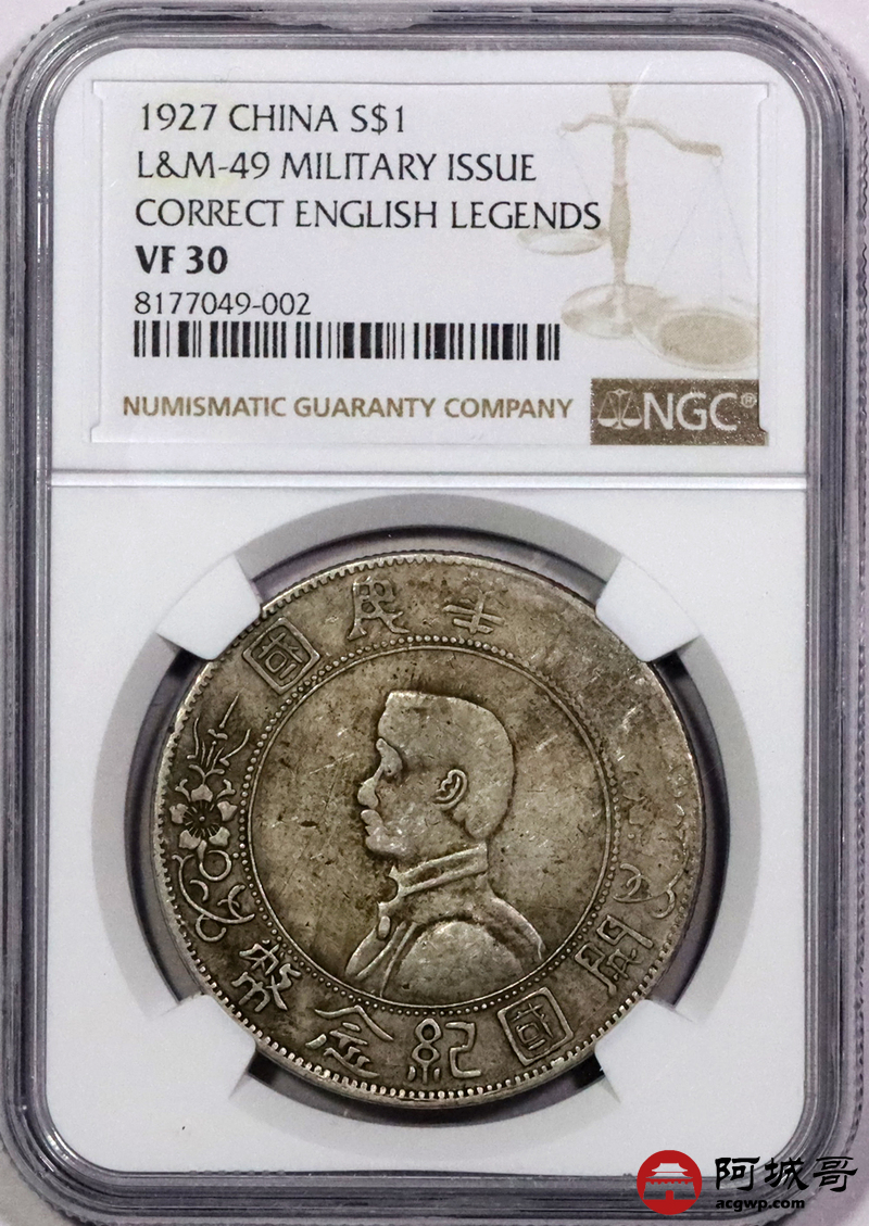 Lot:27 老包浆 孙像小头壹圆 军阀版 NGC VF30