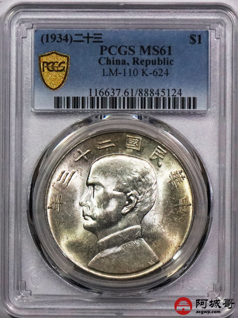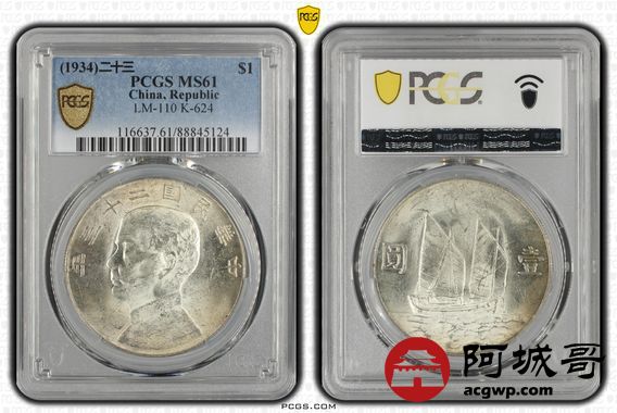 Lot:8 黄油原光 二十三年船洋 PCGS MS61