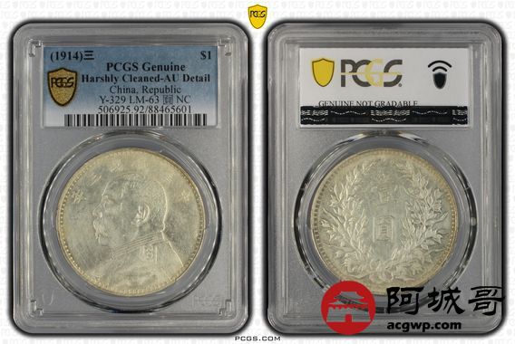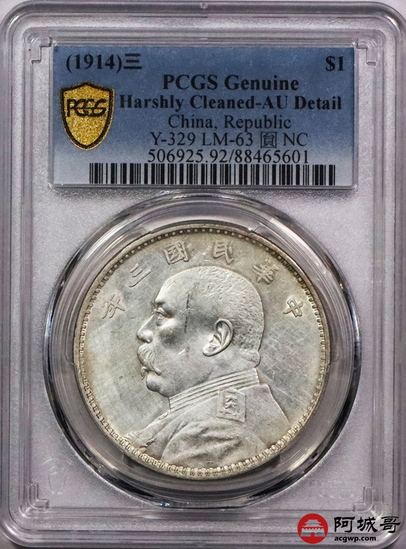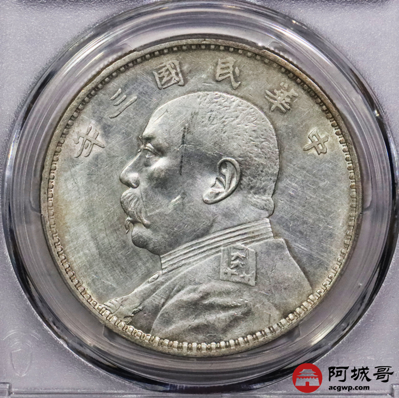 Lot:16 深打 底光 三年大头壹圆 PCGS AU