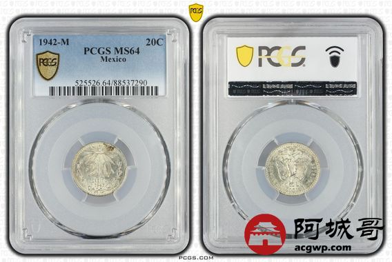 Lot:10 1942年 墨西哥鹰洋 20C PCGS MS64