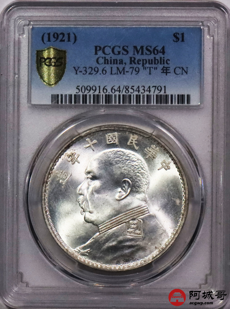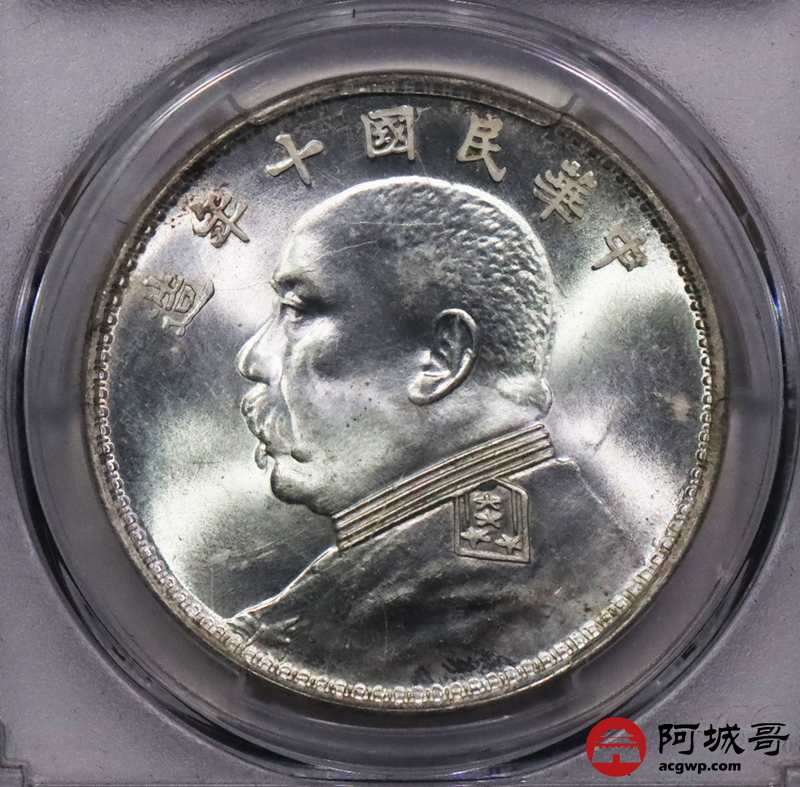 Lot:3144 1921民国十年袁世凯像壹圆银币一枚,银光四射PCGS MS64评级编号:85434791