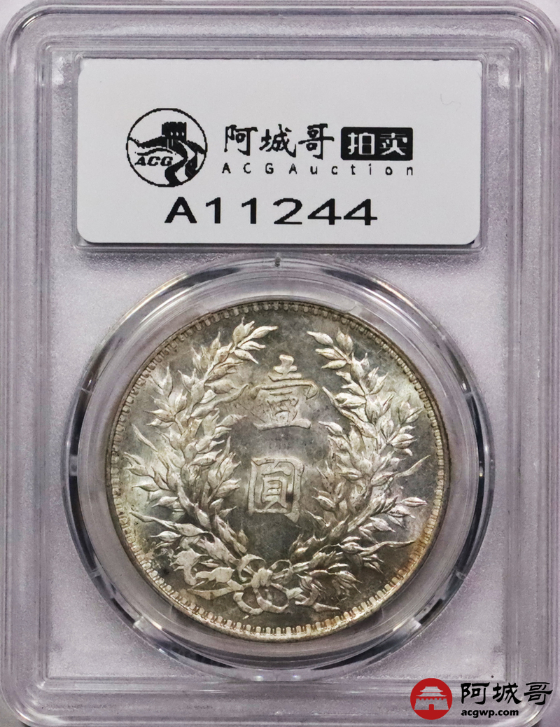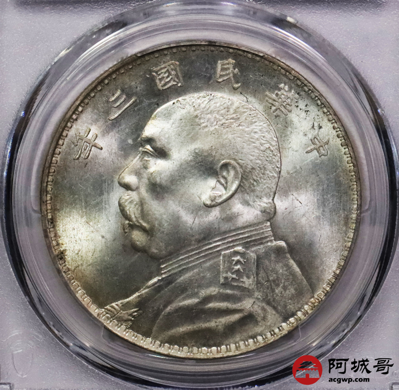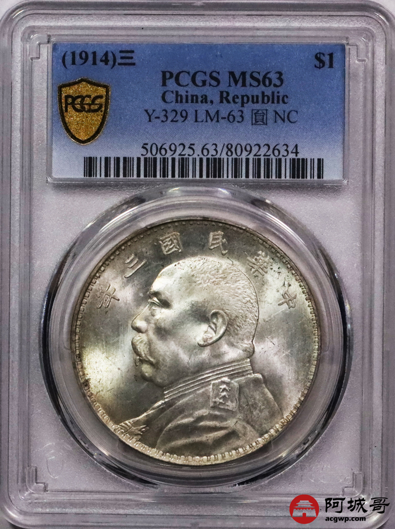 Lot:3486 1914民国三年袁世凯像壹圆银币一枚,镜面原光底板 PCGS MS63评级编号:80922634