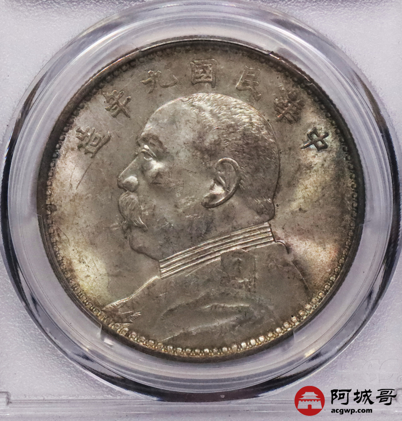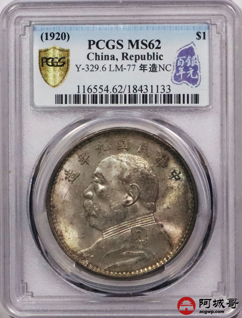 Lot:3519 1920民国九年袁世凯像壹圆银币一枚,精发版,百年银圆标签PCGS MS63评级编号:18431133