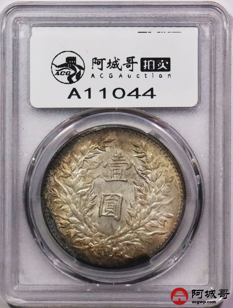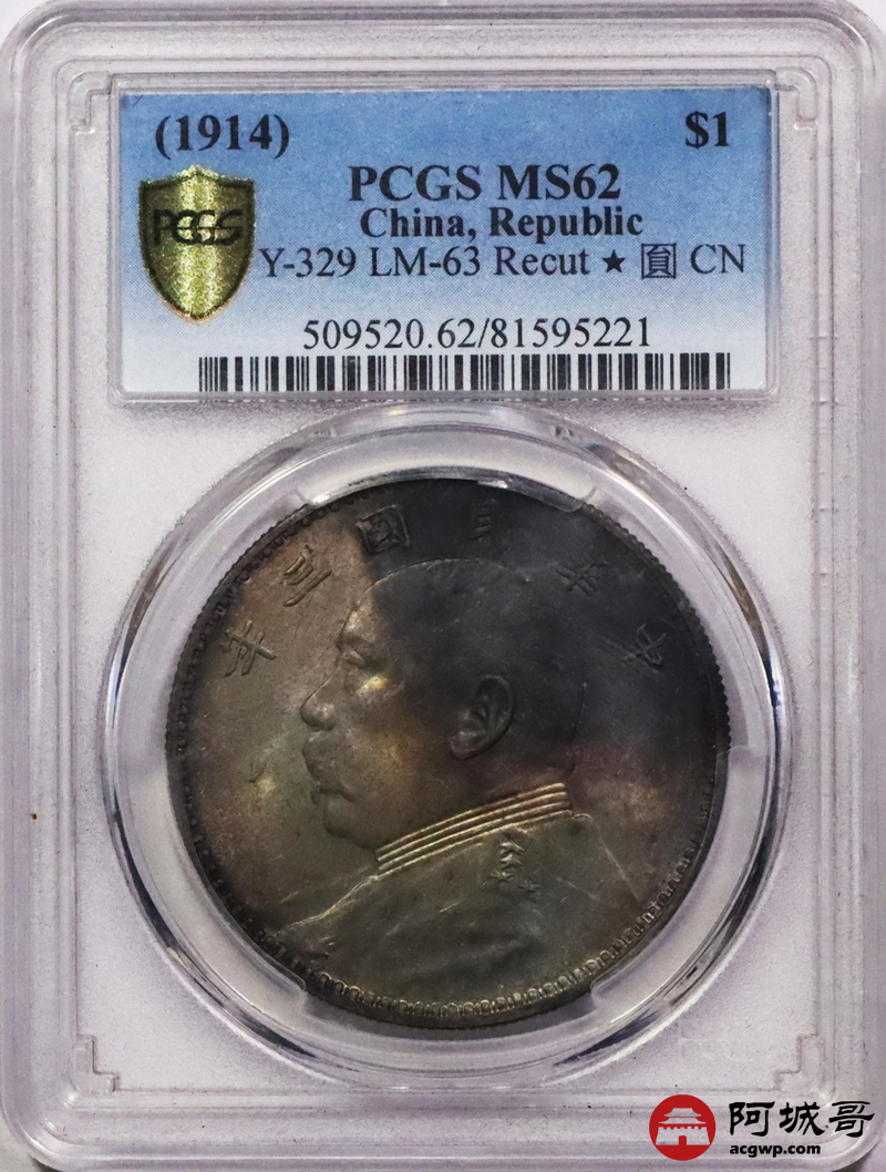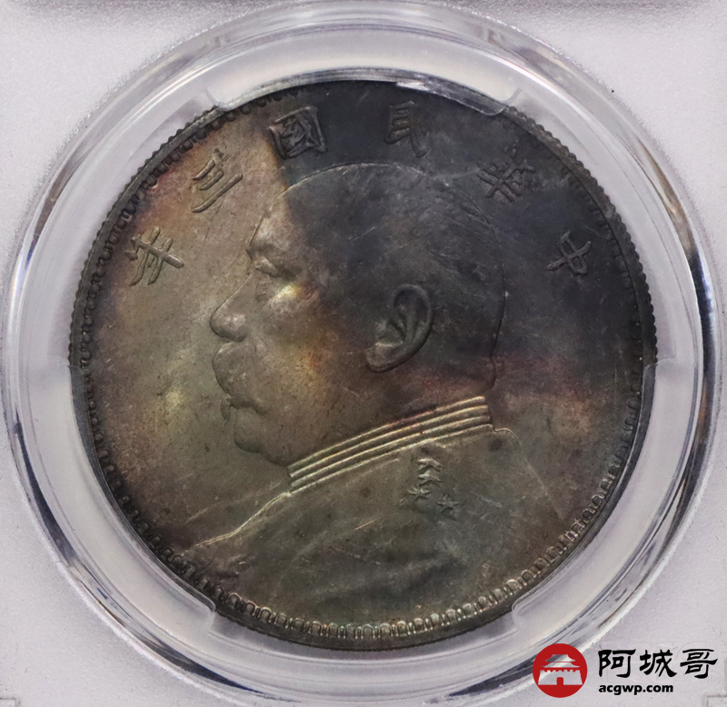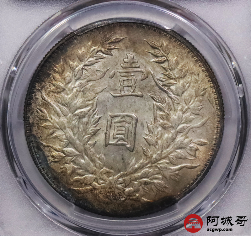 Lot:3489 1914民国三年袁世凯像壹圆银币一枚 五彩包浆 PCGS MS62评级编号:81595221