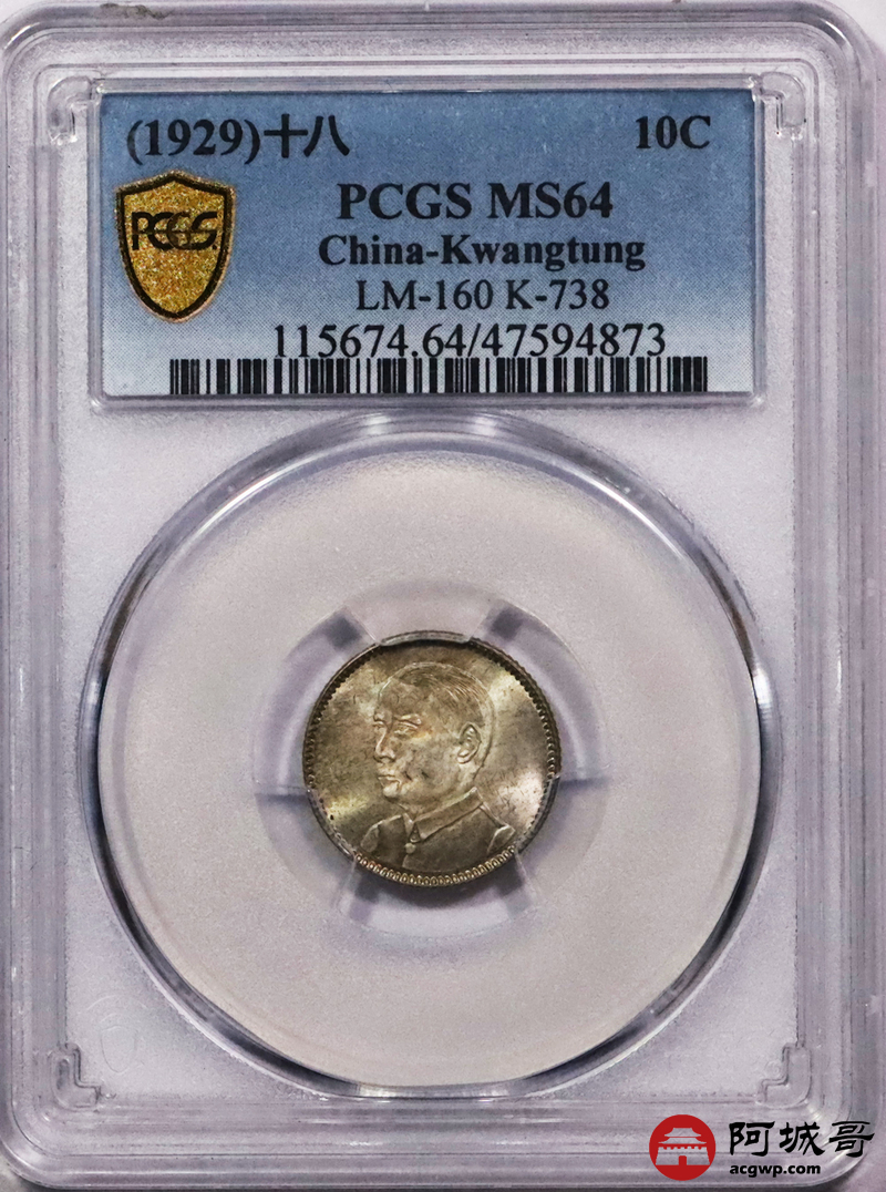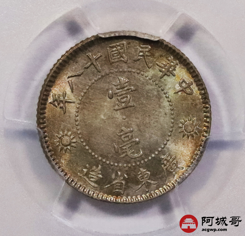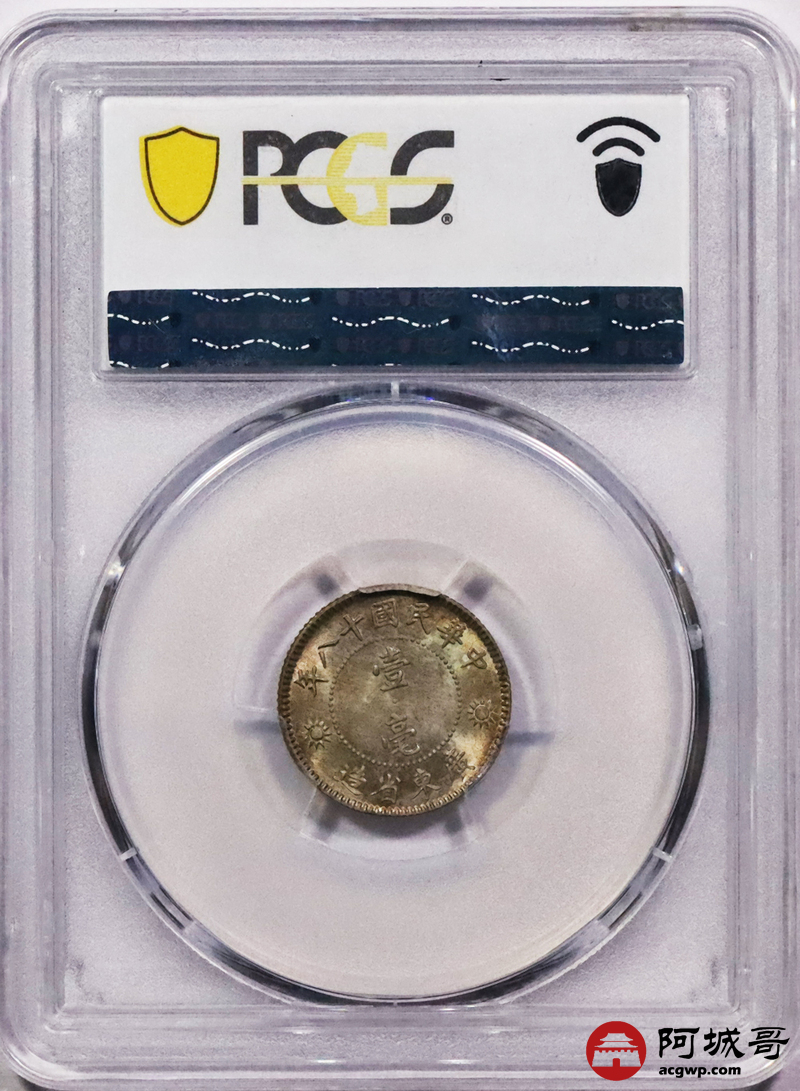 Lot:23 淡彩原光民国十八年广东壹豪PCGS MS64