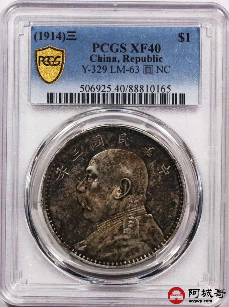 Lot:41 原味酱彩包浆 三年大头壹圆 PCGS XF40