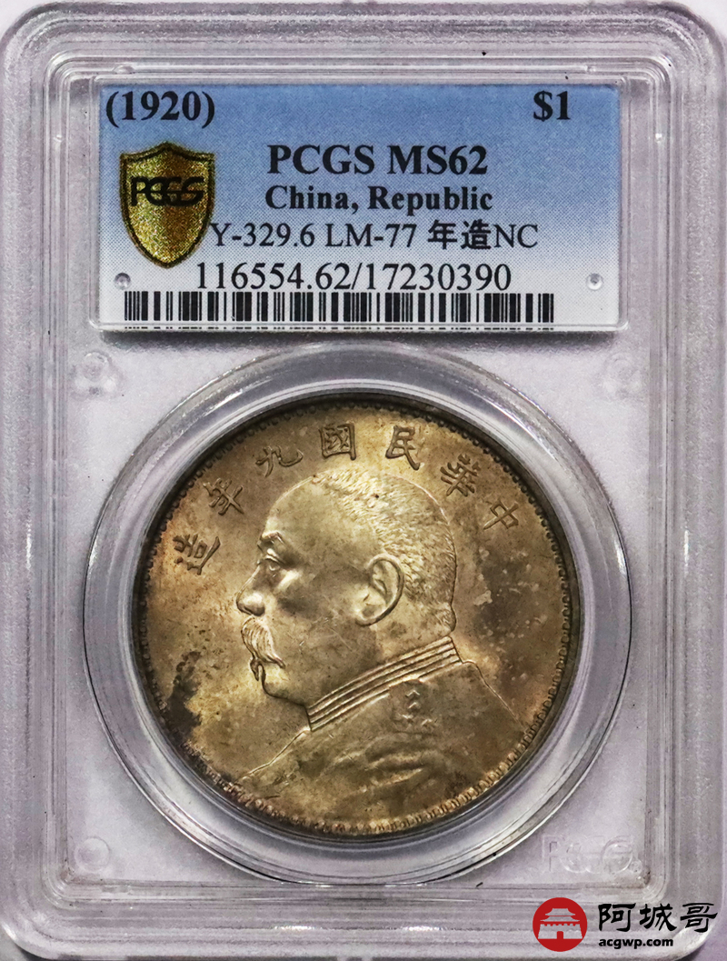 Lot:18 五彩原光 九年精发壹圆 PCGS MS62