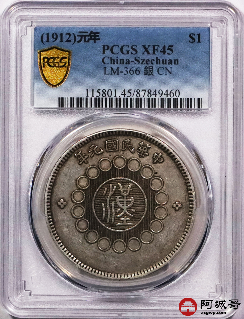Lot:10 原味老包浆四川军政府壹圆 PCGS XF45