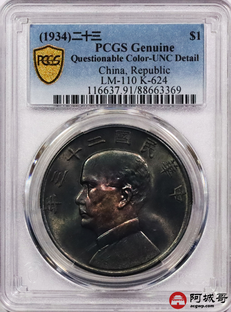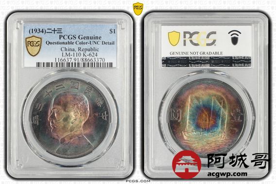 Lot:3 黑五彩 二十三年船洋 PCGS UNC