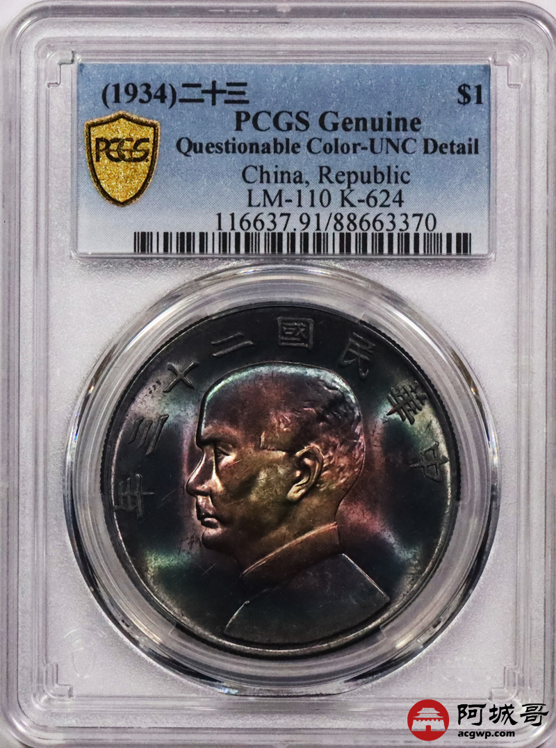 Lot:1 炫丽五彩 二十三年船洋 PCGS UNC