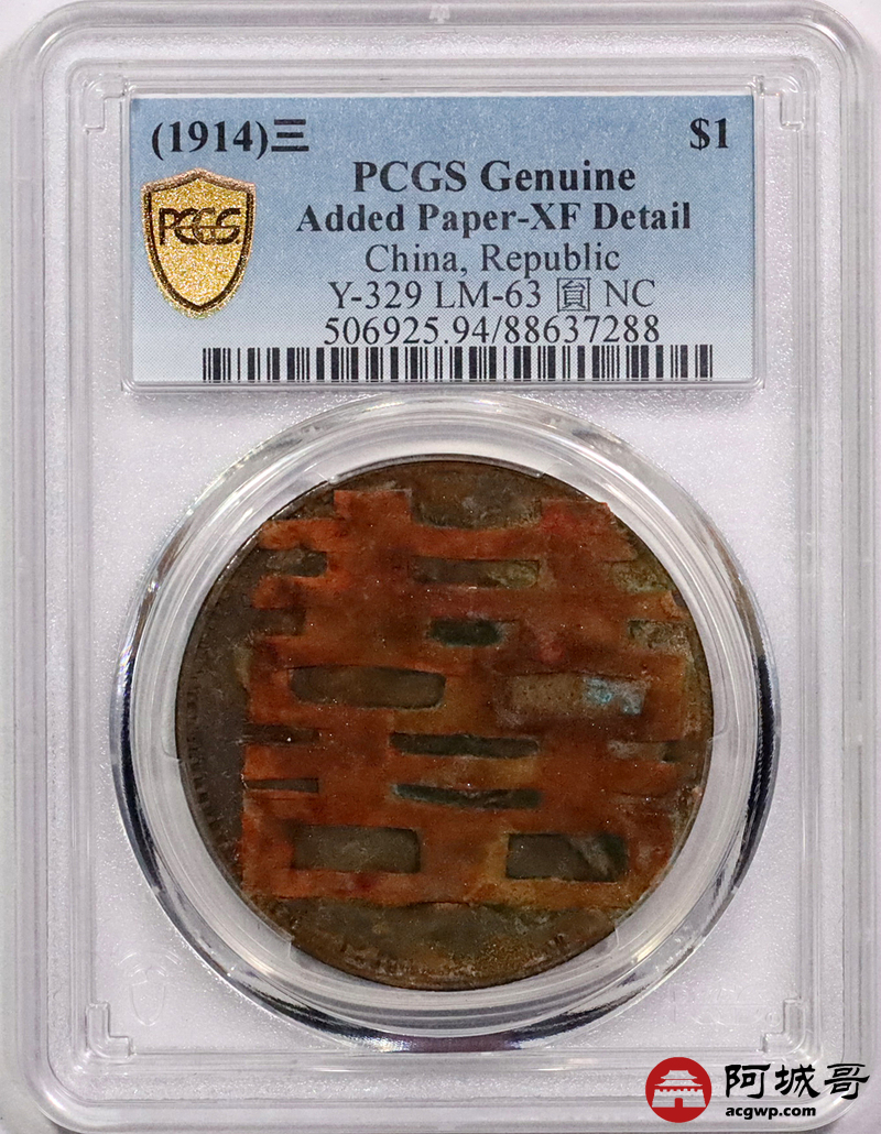 Lot:17 原味老包浆 三年大头 吉贴双囍 PCGS XF