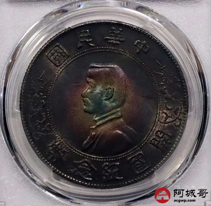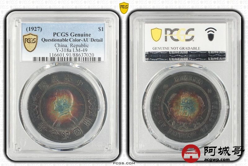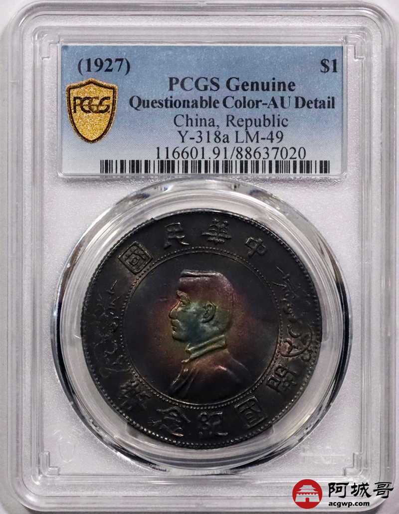 Lot:5 环黑彩转光 孙像小头壹圆 PCGS AU