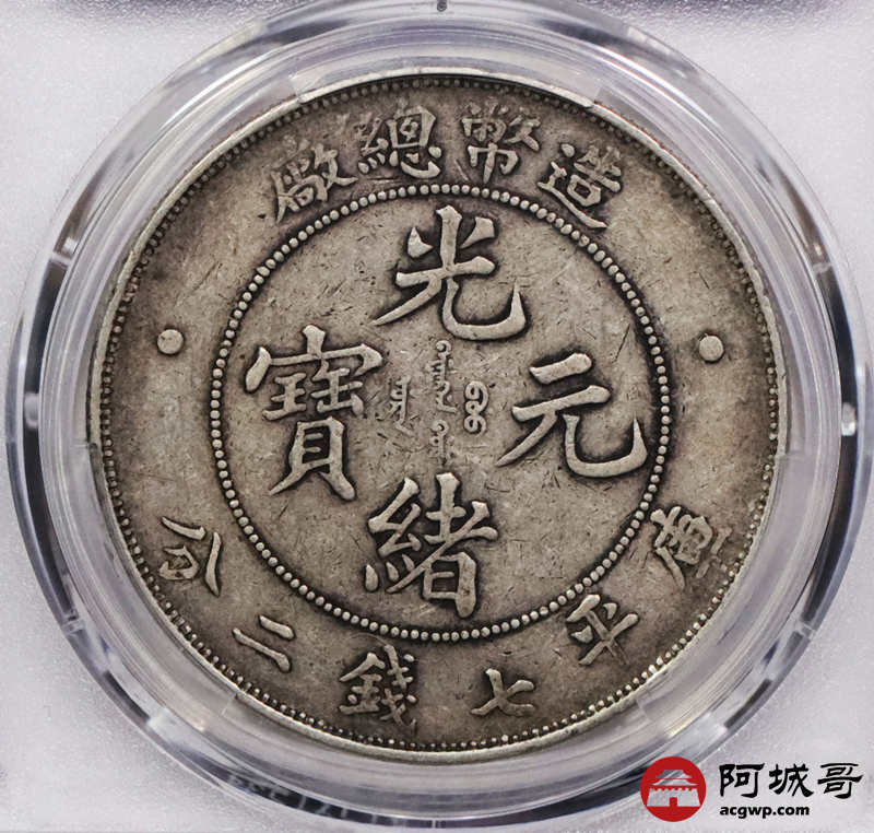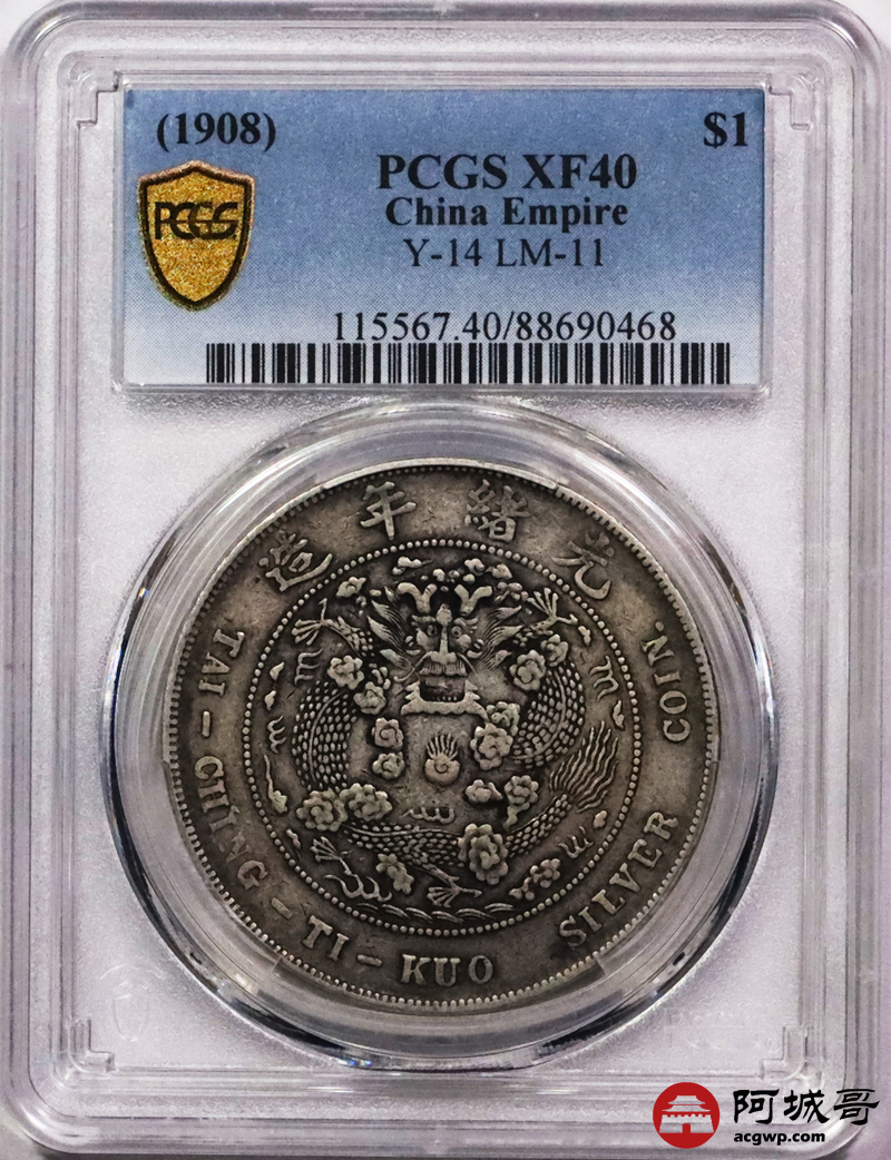 Lot:3012 1908光绪年造造币总厂光绪元宝库平七钱二分银币一枚,原味包浆 PCGS XF40