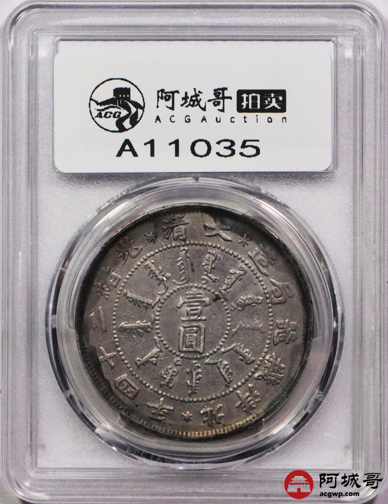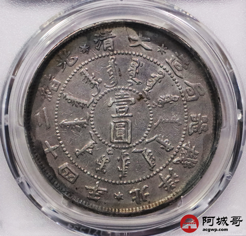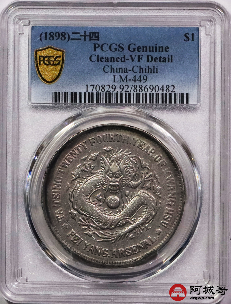 Lot:3273 1898北洋造大清光绪二十四年机器局壹圆银币一枚,粉彩底板 PCGS VF 评级编号:88690482