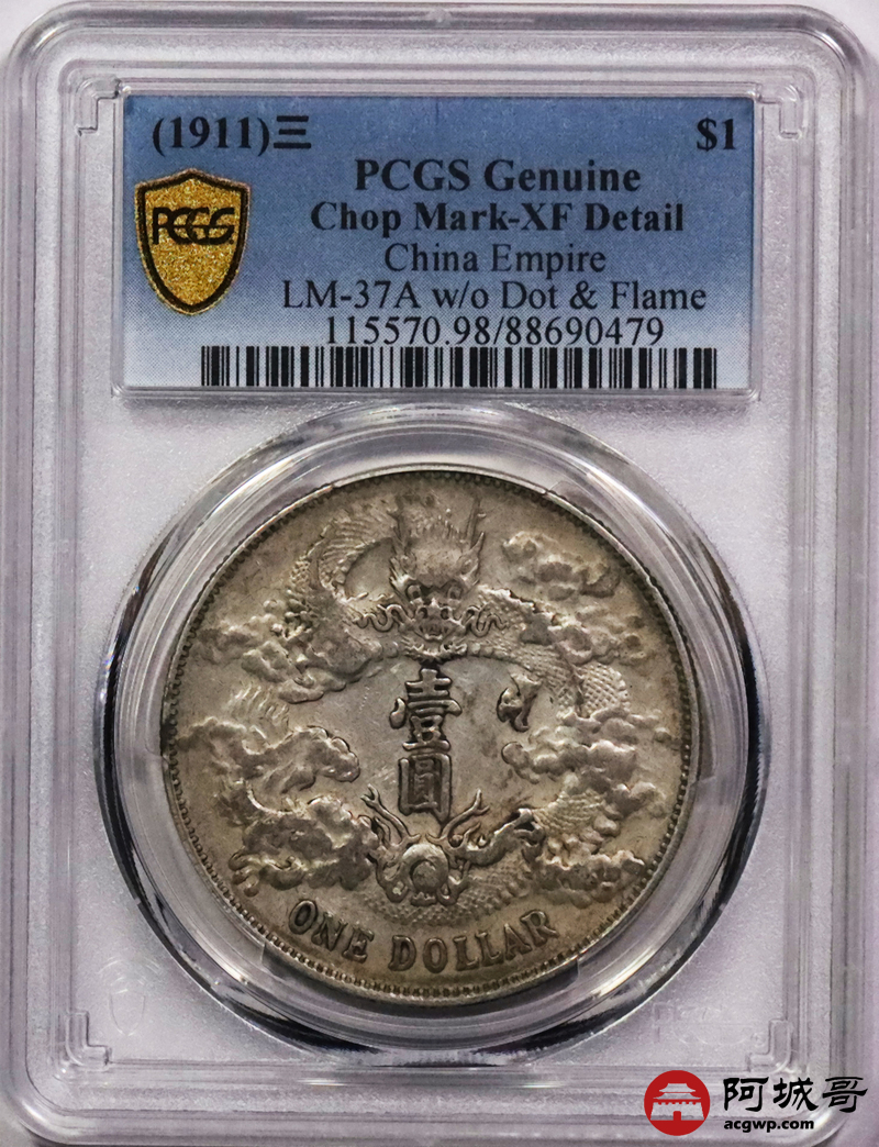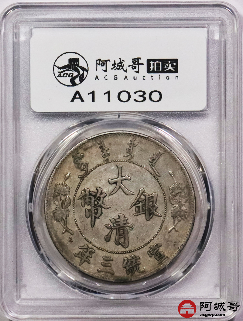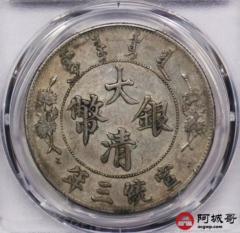 Lot:3059 1911宣统三年大清壹圆银币一枚,原味包浆 PCGS XF 评级编号:88690479