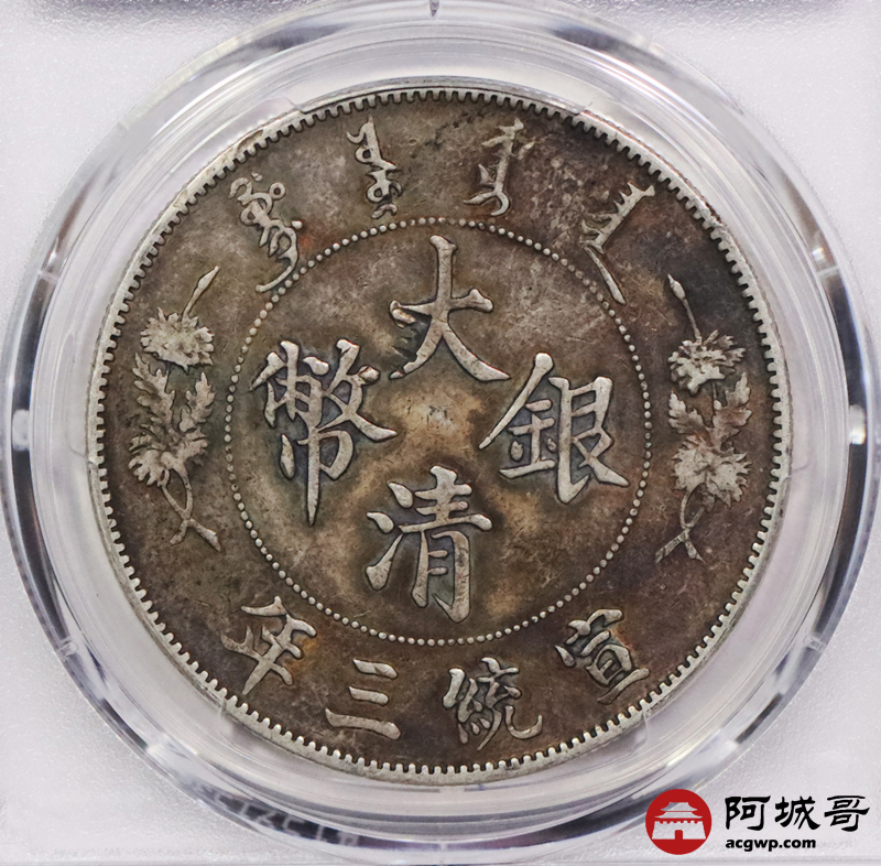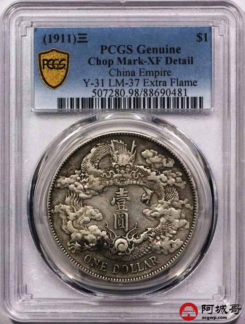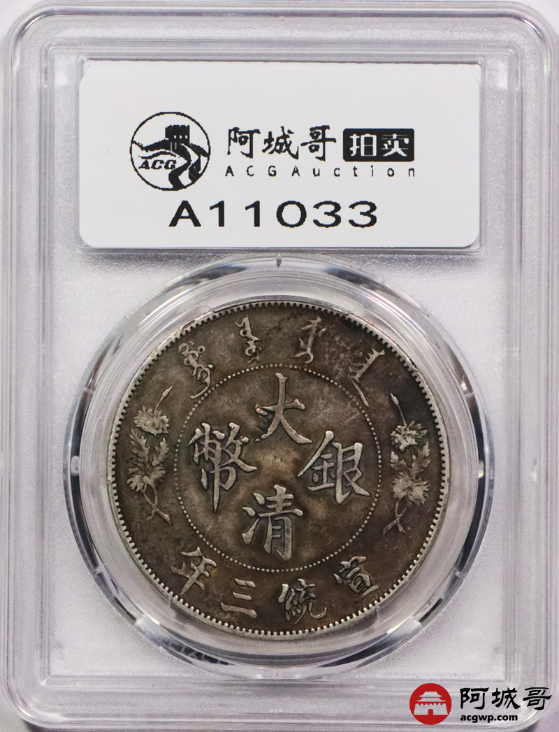 Lot:3042 1911宣统三年大清壹圆银币一枚,原味包浆 PCGS XF 评级编号:88690481