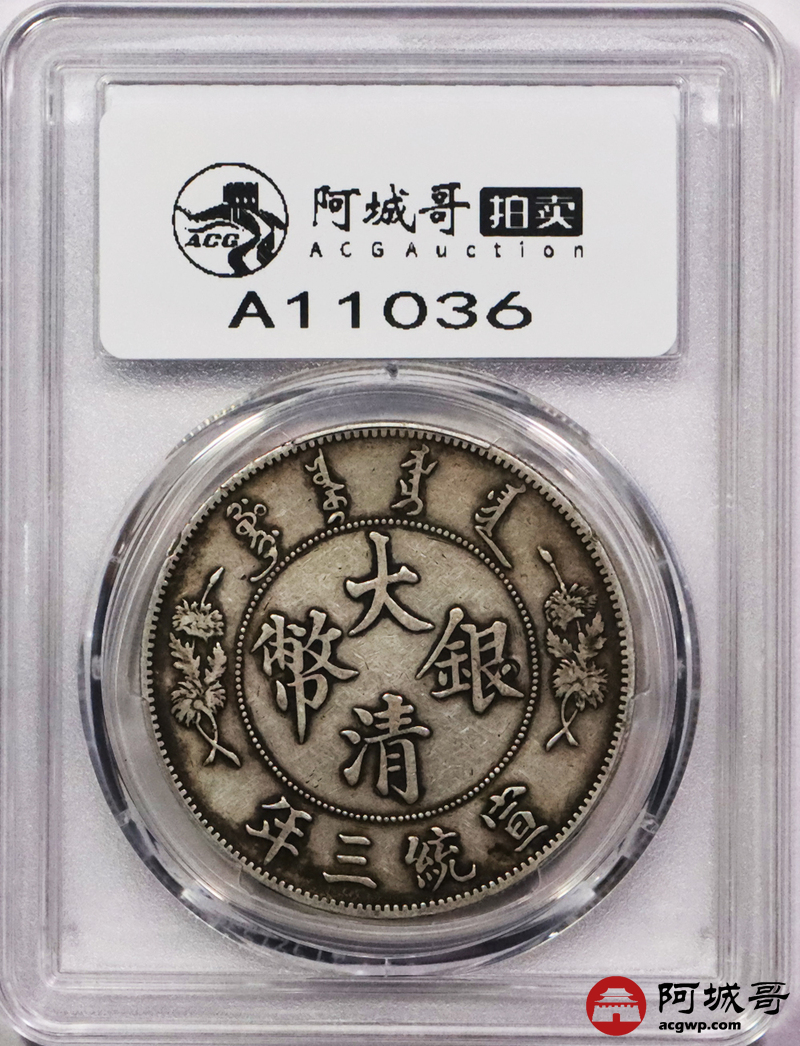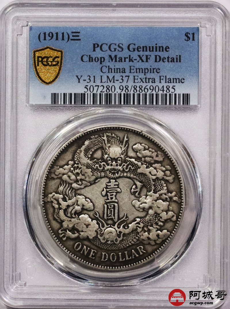 Lot:3055 1911宣统三年大清壹圆银币一枚,原味包浆 PCGS XF 评级编号:88690485