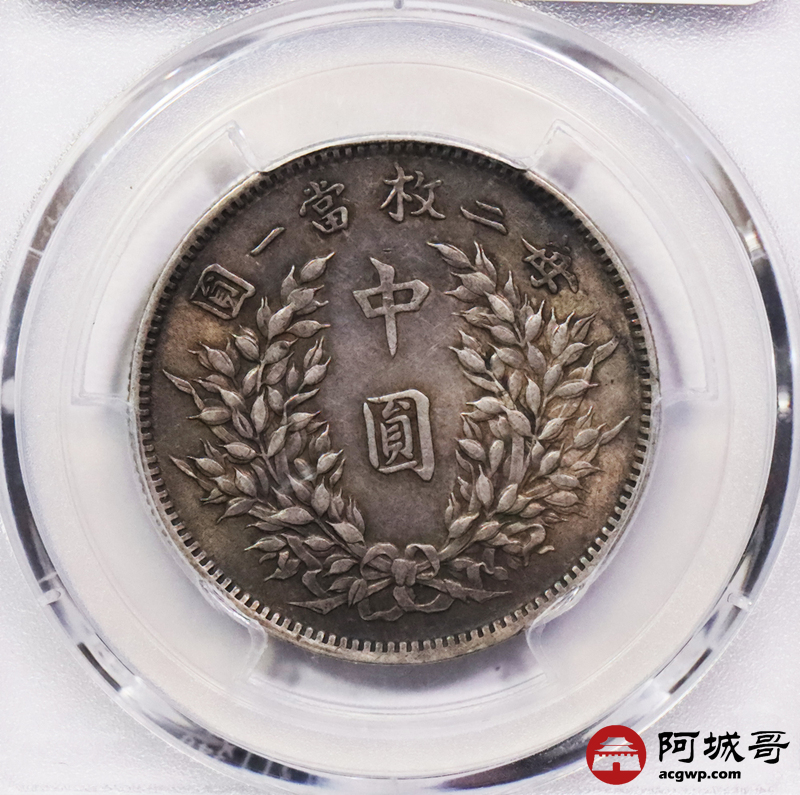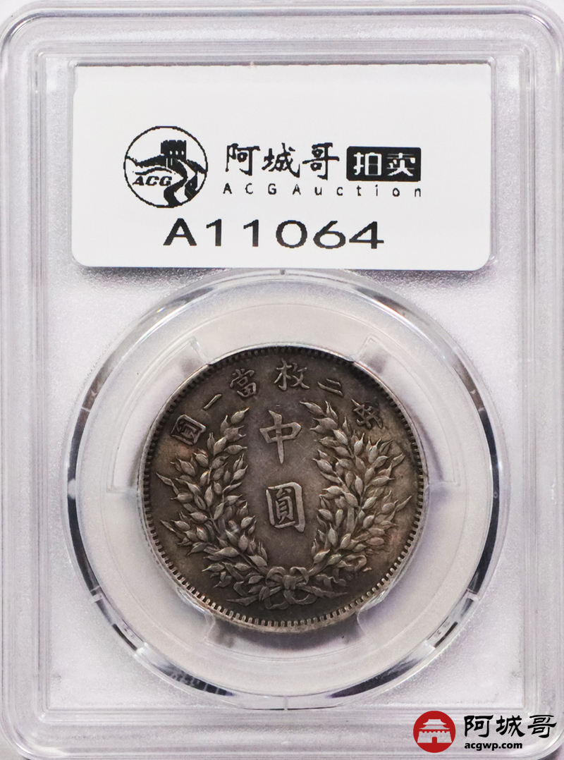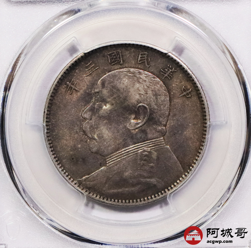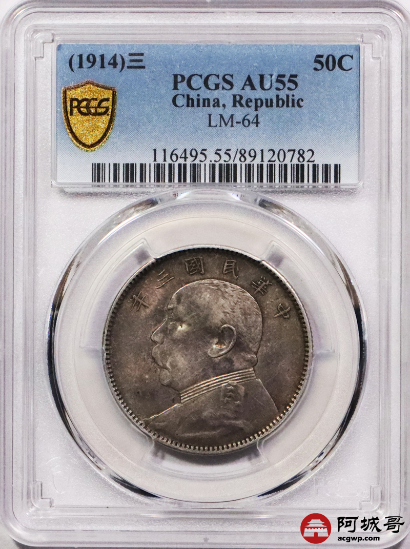 Lot:3131 1914民国三年袁世凯像中圆银币一枚,重黄油彩浆 PCGS AU55 评级编号:89120782