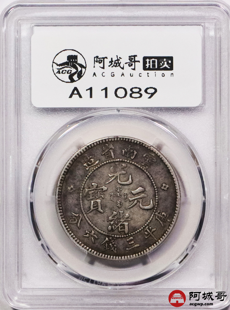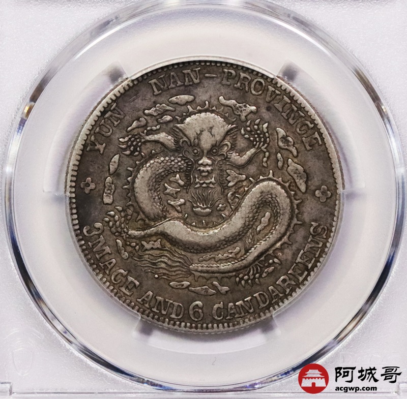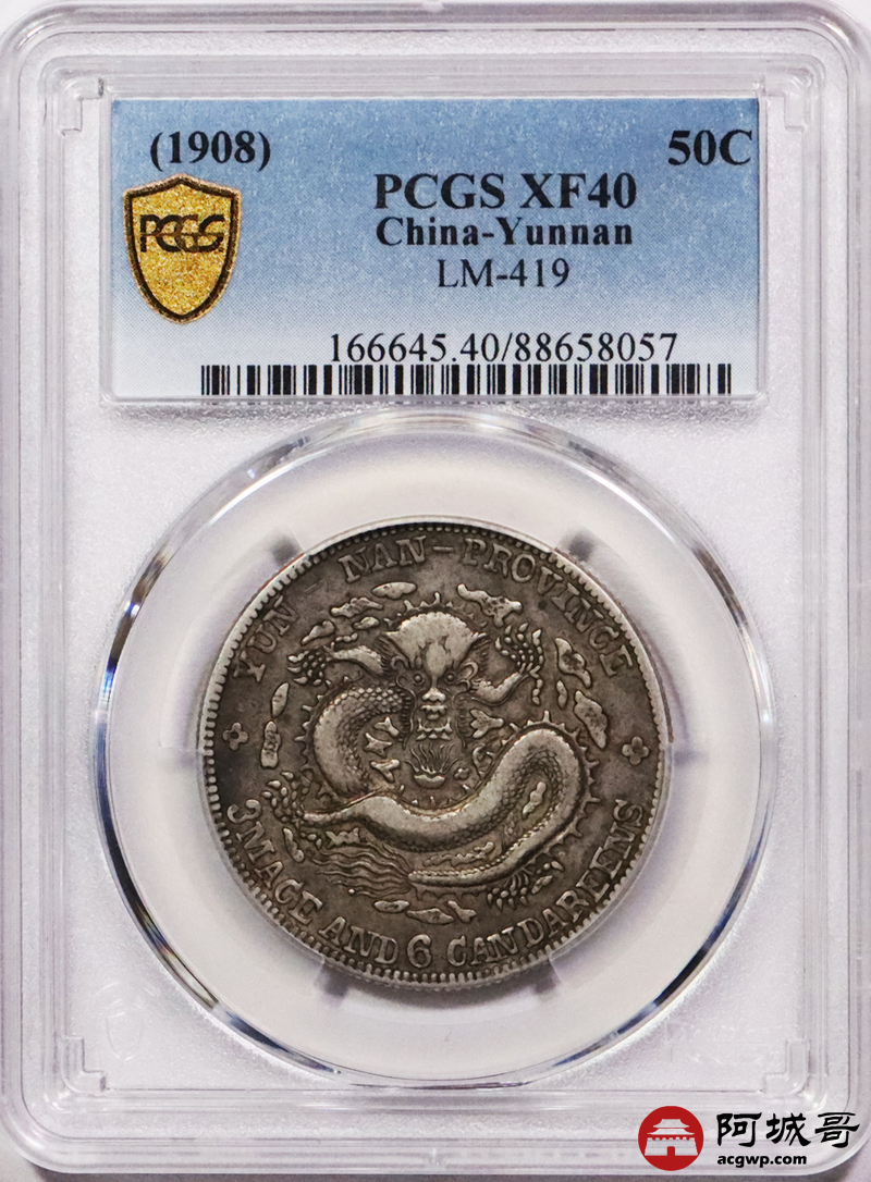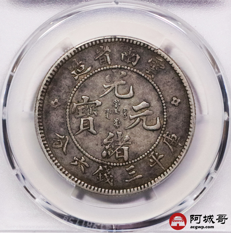 Lot:3411 1908云南省造光绪元宝库平三钱六分银币一枚 原汁原味 PCGS XF40评级编号:88658057