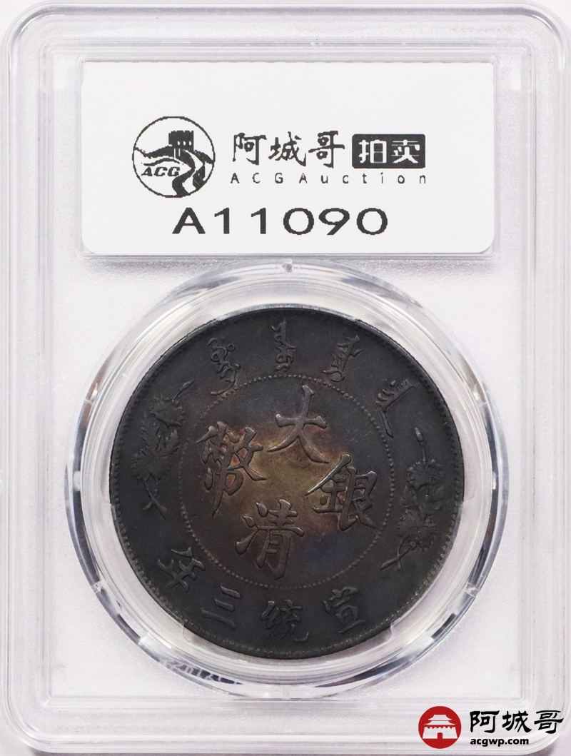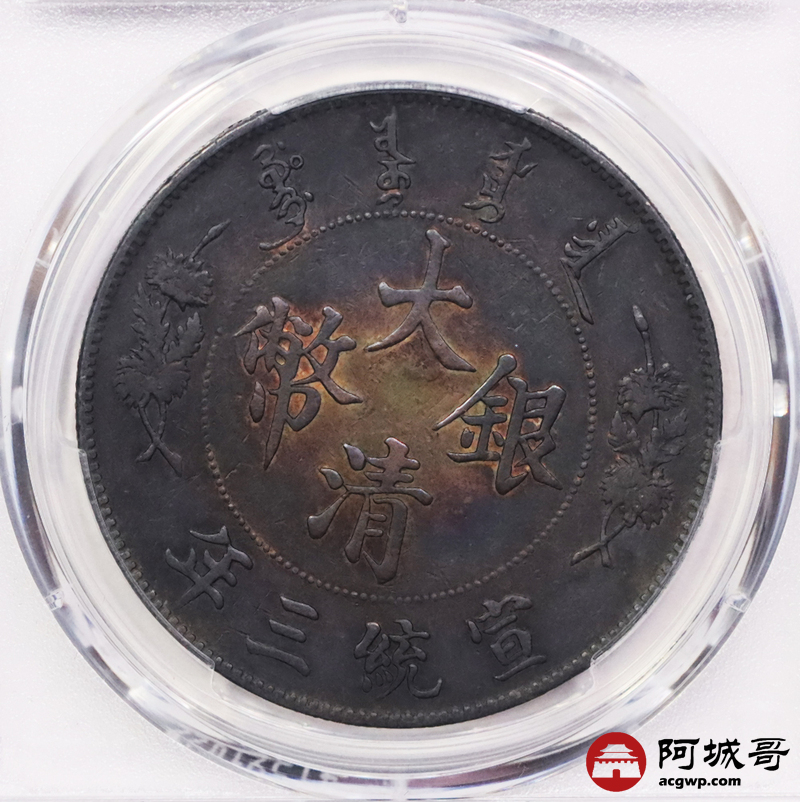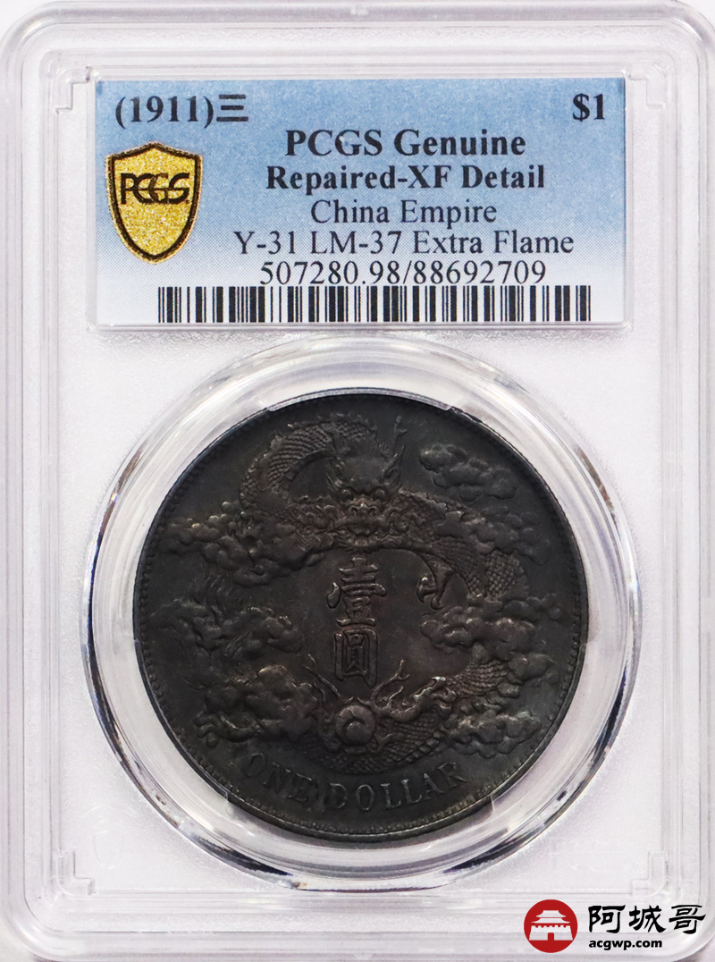 Lot:3052 1911宣统三年大清银币壹圆一枚,酱黑彩包浆,PCGS XF评级编号:88692709