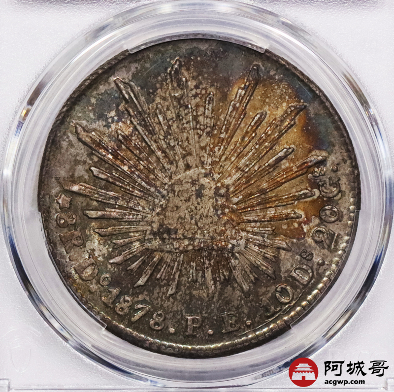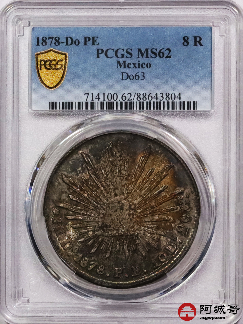Lot:3683 1878DoPE墨西哥鹰洋壹元银币一枚,五彩包浆,PCGS MS62评级编号:88643804